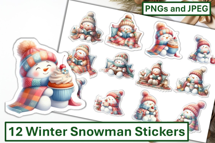 12 Winter Snowman Stickers JPEG & PNG