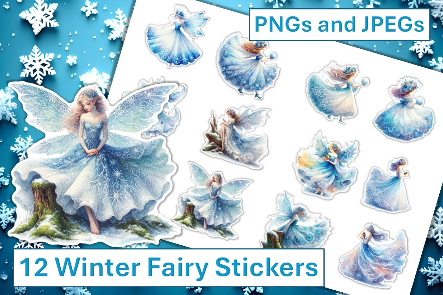 12 Winter Cute Fairy Stickers JPEG & PNG