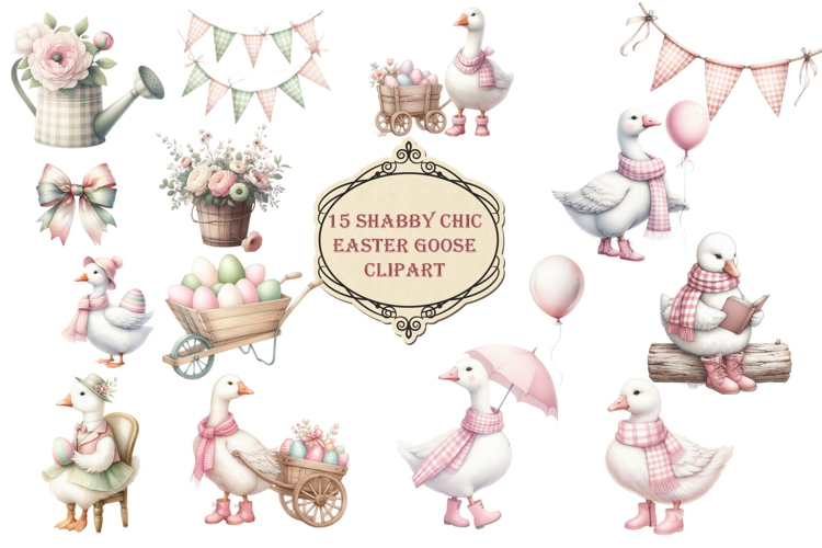 15 Shabby Chic Easter Goose clipart PNGs