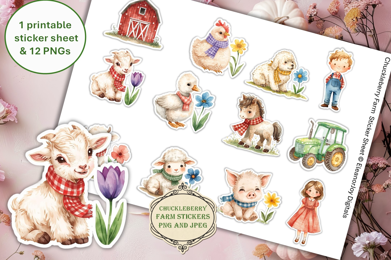12 Shabby Chic Chuckleberry Farm Stickers PNGs & JPEGS example image 1