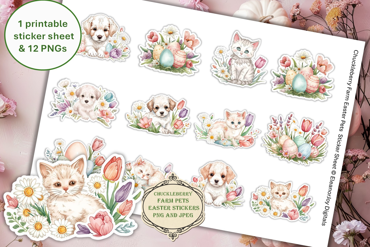 12 Shabby Chic Chuckleberry Farm Easter Pets Stickers PNGs example image 1