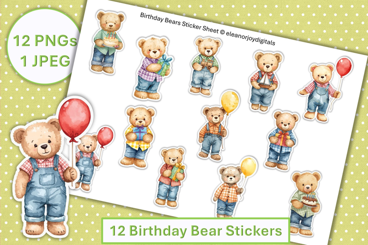 Introducing a whimsical collection of 12 Adorable Birthday Bear stickers, also used as “Fussy Cuts”. These charming accents serve as ideal decor elements for your planners, journals, laptops, scrapbooks and so much more. Each PNG file, measuring 20cm x 20cm, offers flexibility for editors, allowing easy resizing to fit your unique needs. Our ‘Fussy Cuts’ pack comprises 12 PNGs along with a printable JPEG sheet for your convenience. Moreover, the PNG files can beautifully assimilate as components in your own design project. Bring depth, whimsy, and a dose of magic into your creations with our Fussy Cuts Birthday Bear stickers.