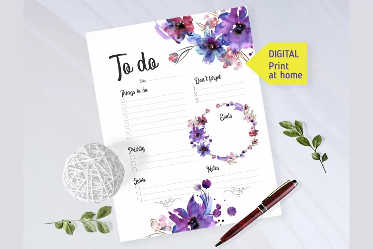 Floral Background Stationery Paper Scrapbook Page Watercolor Planner Instant Planner Watercolor Daily Printable To Do Ist Diy Note Pages Flower Girl Planner Digital To Do