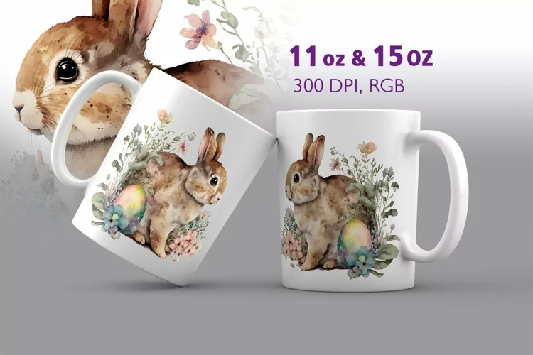 Watercolor Easter Bunny Mug Sublimation example image 1
