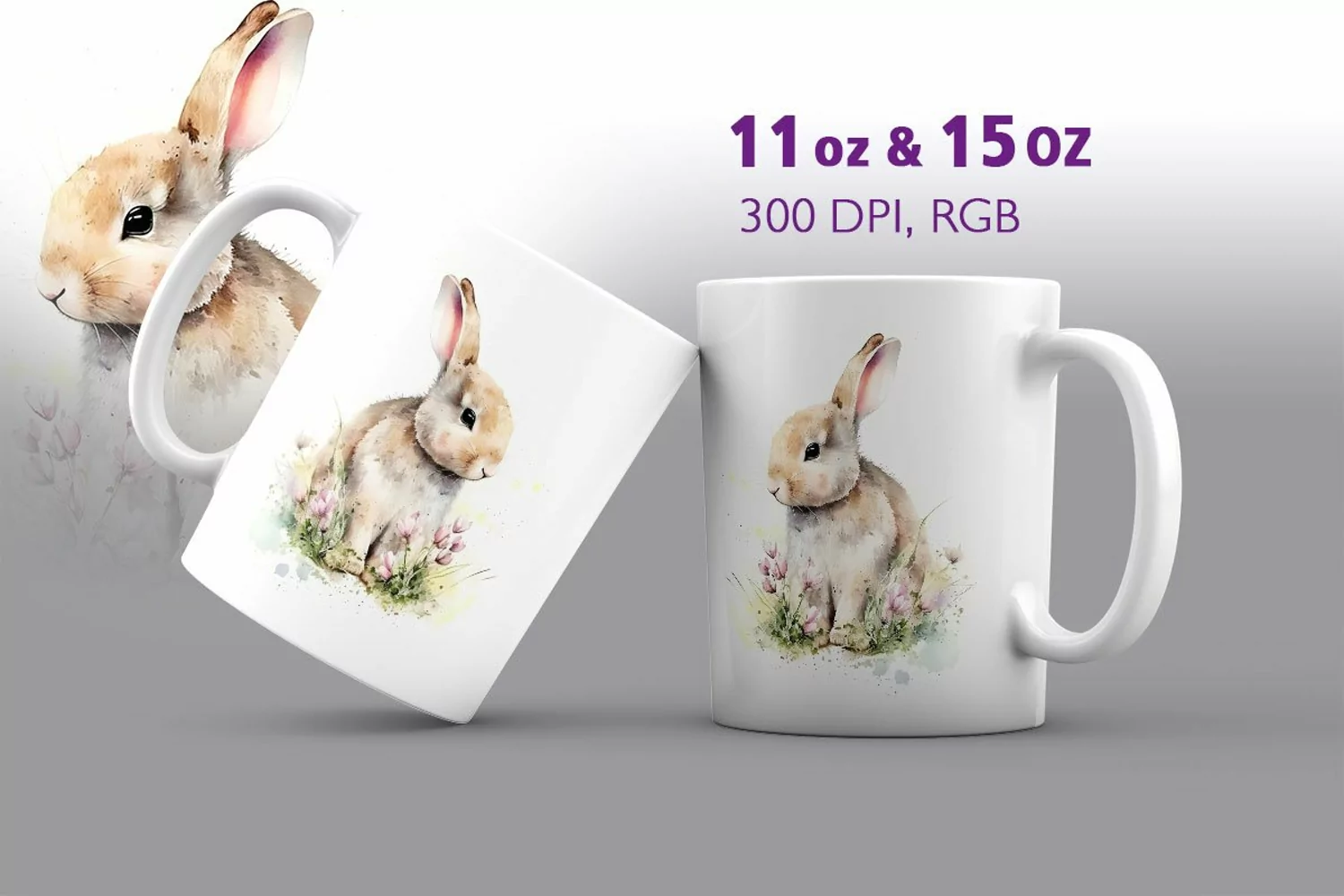Watercolor Easter Bunny Mug Sublimation example image 1