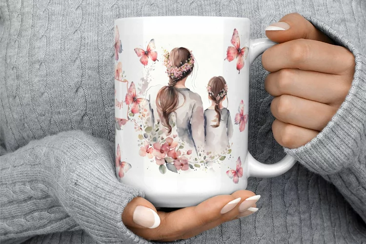 Mom And Daughter Mug Sublimation Design Pink Butterflies Full Wrap Sublimation Mug Mug Wrap Png Mama Birthday Gift Mom Greeting 11oz Mug Png Cute Watercolor Painting Watercolor Floral Mothers Day