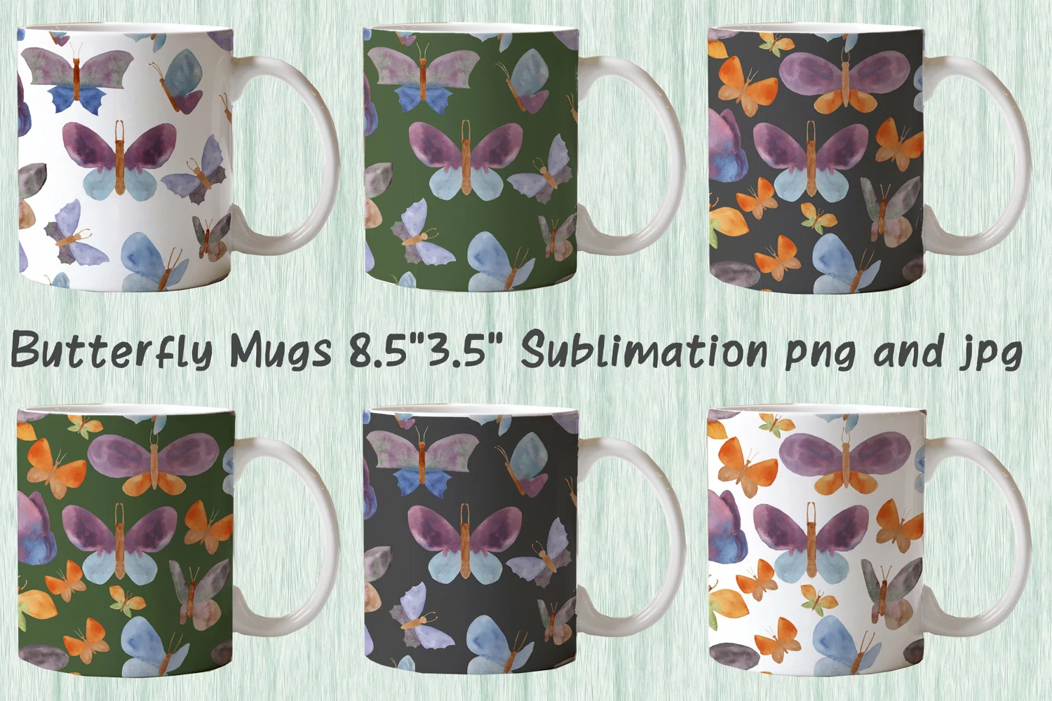 Watercolor Watercolor Clipart Watercolor Butterflies Butterfly Pattern Set Of Mugs Set Of Cups Bright Butterflies Butterflies Sublimation Tropical Butterflies Butterflies Dark Background