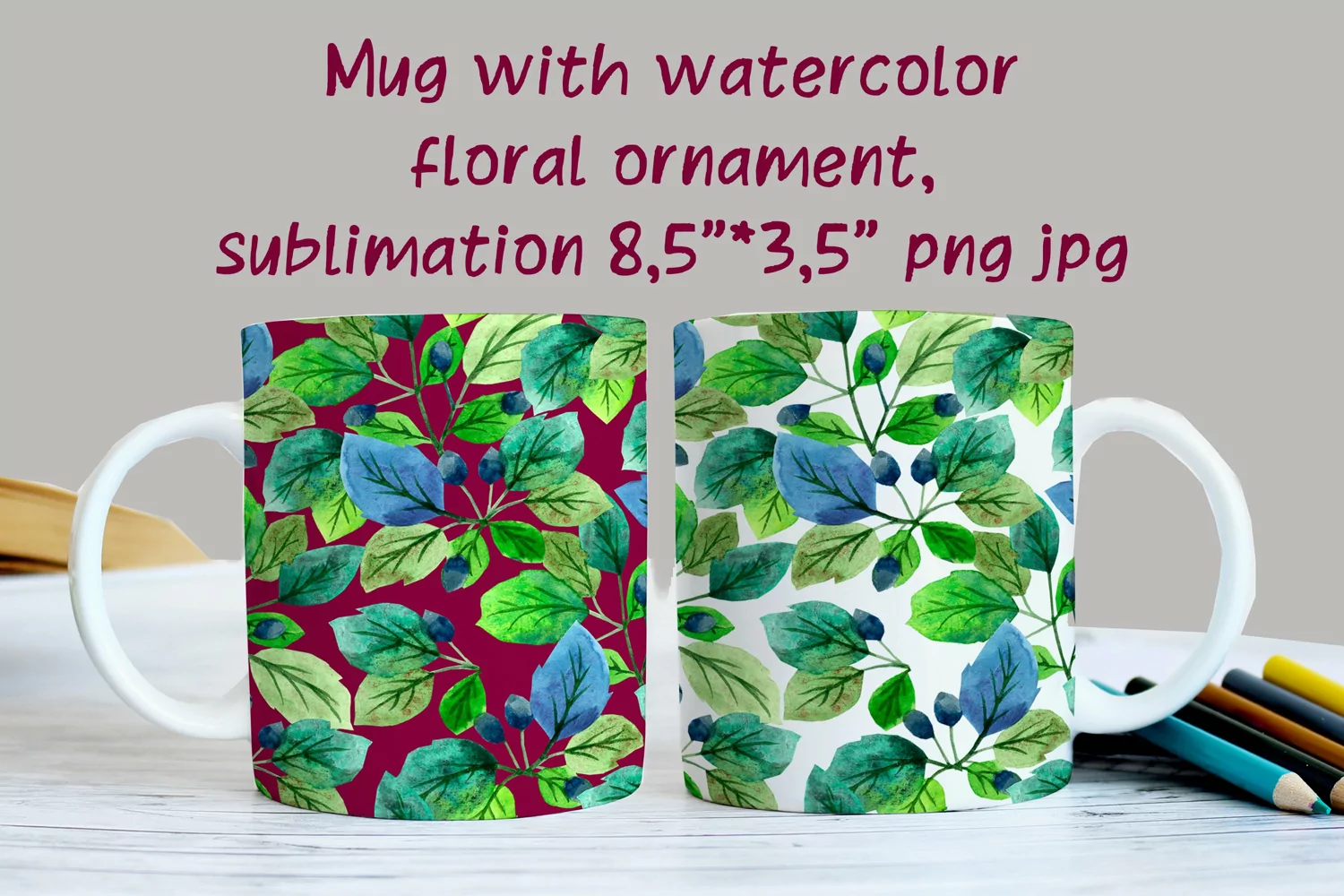 Watercolor Watercolor Clipart Coffee Mug Sublimation Mug Floral Ornament Sublimation Ornament Summer Mug Leaves Mug Ornament Mug Twigs Mug