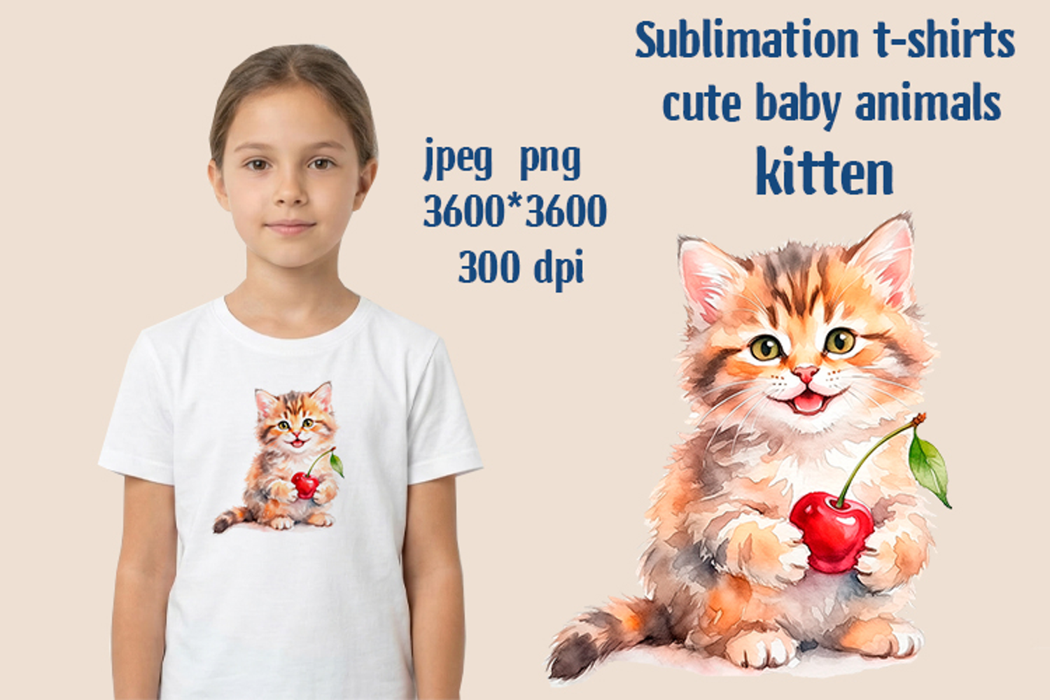T-shirt sublimation cute baby animals , sublimation kitten, png jpg