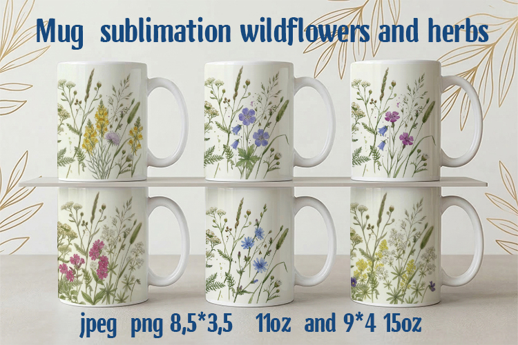 Mugs sublimation design wildflowers herbs 8,5"*3,5" 11oz and 9"*4" 15oz