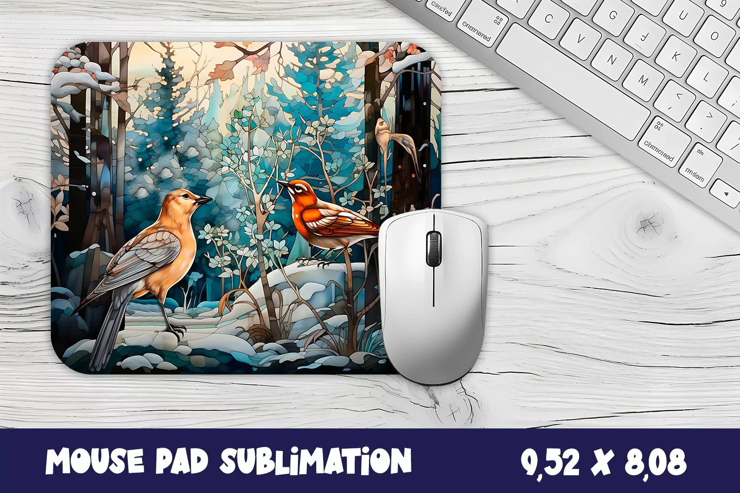 Stained Glass Winter bird Mouse Pad Sublimation