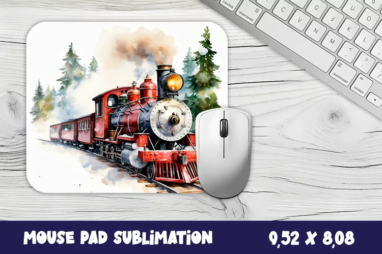Mouse Pad Office Supplies Mousepad Seasonal Art Mouse Pad Design Mouse Mat Mouse Pad Sublimation Designs Christmas Mousepad Designs Train Watercolor Mouse Pad Old Train Watercolor Mouse Pad