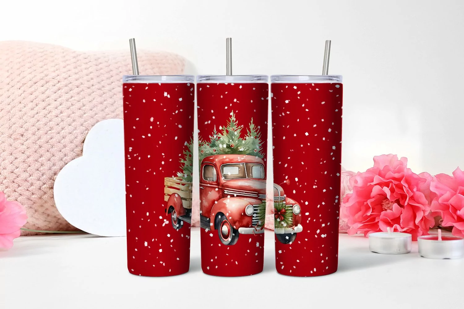 Watercolor Christmas car Tumbler sublimation