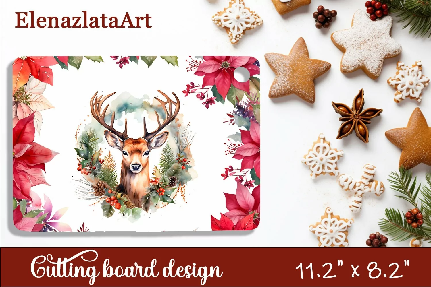 Sublimation cutting board winter deer, Sublimation Winter example image 1