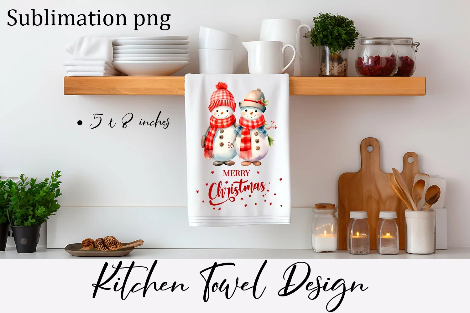 Christmas Kitchen Dish Towel PNG. Snowman Sublimation example image 1