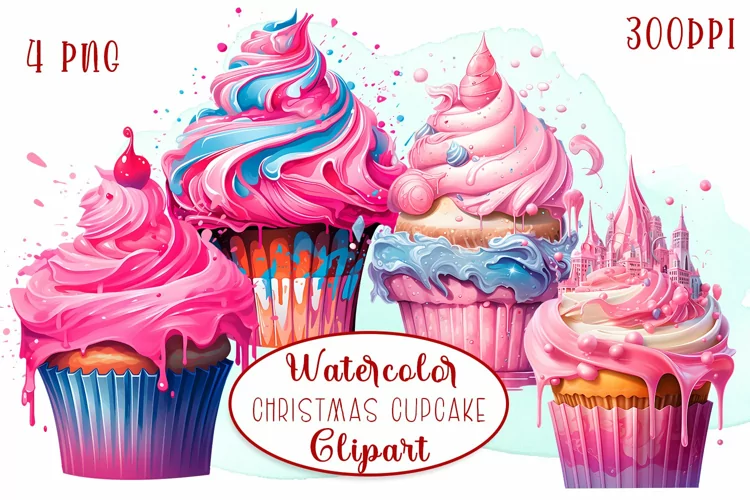 For all Christmas lovers! Watercolor Christmas Cupcake Clipart. Vintage sublimations. It was a lot of fun creating this cute sublimation design beautiful christmas clipart! Colorful, festive and fun!