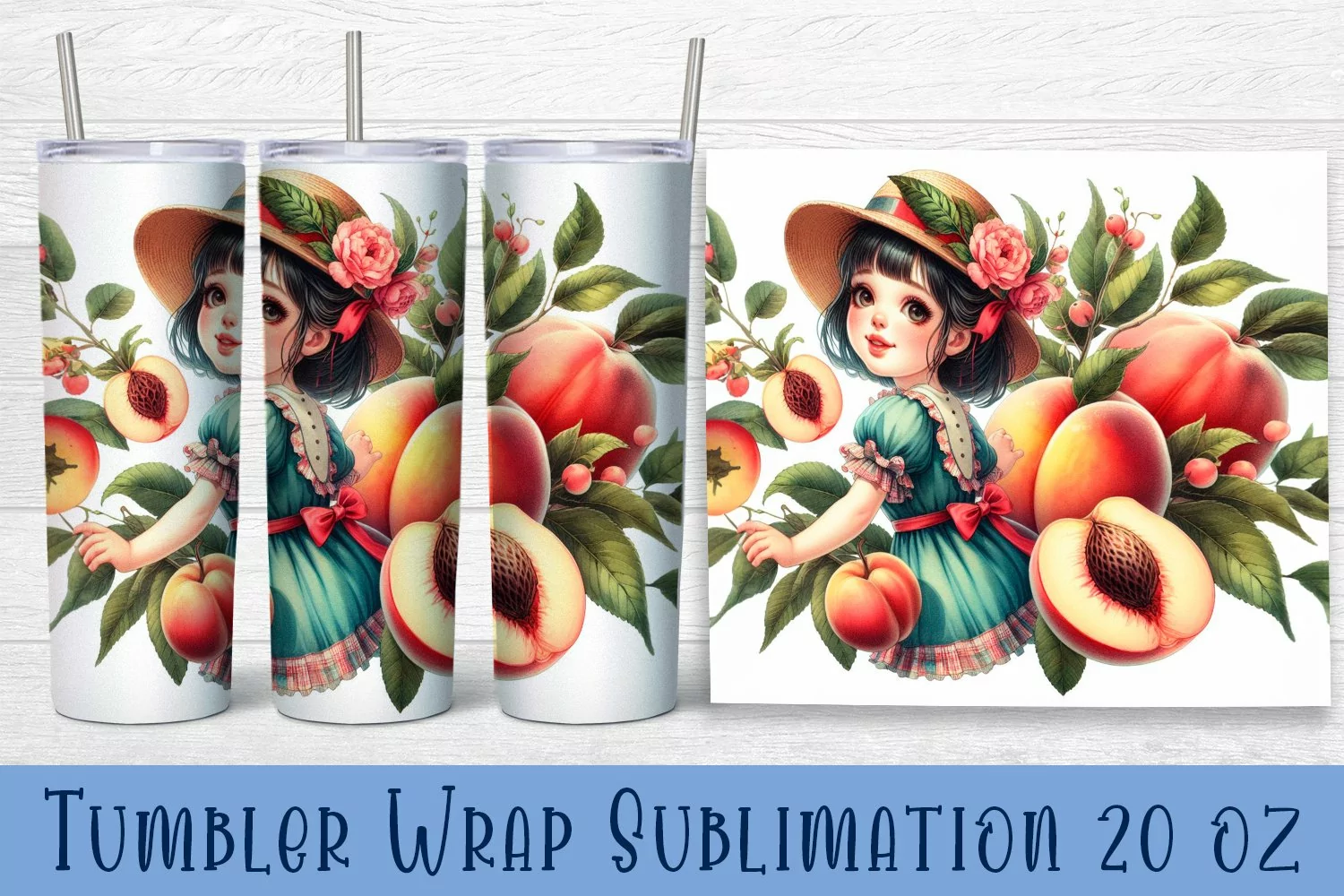 Beautiful Girl Tumbler Wrap | girl with peach Sublimation example image 1