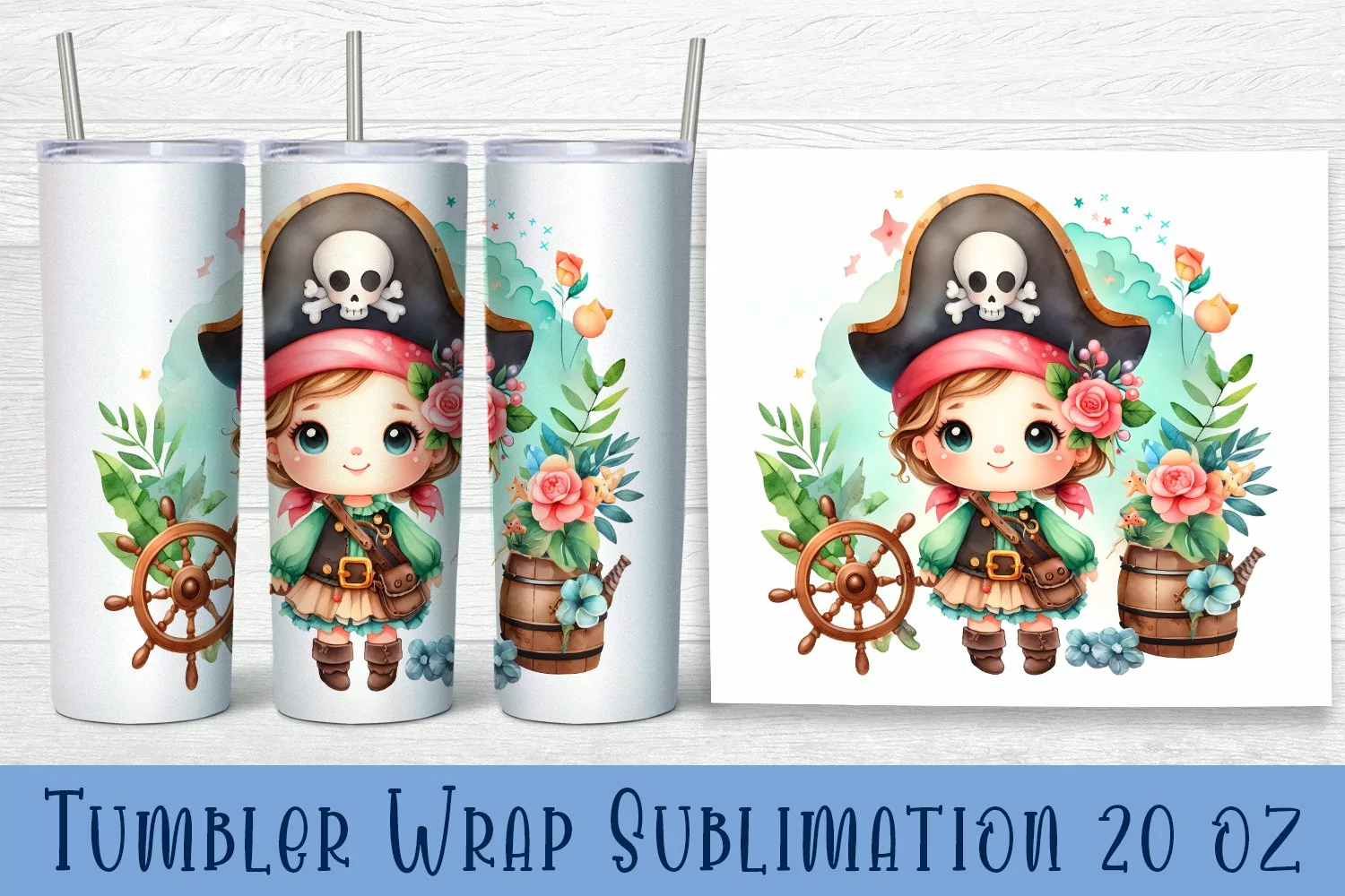 Watercolor pirat baby tumbler. Cute ship Tumbler wrap example image 1