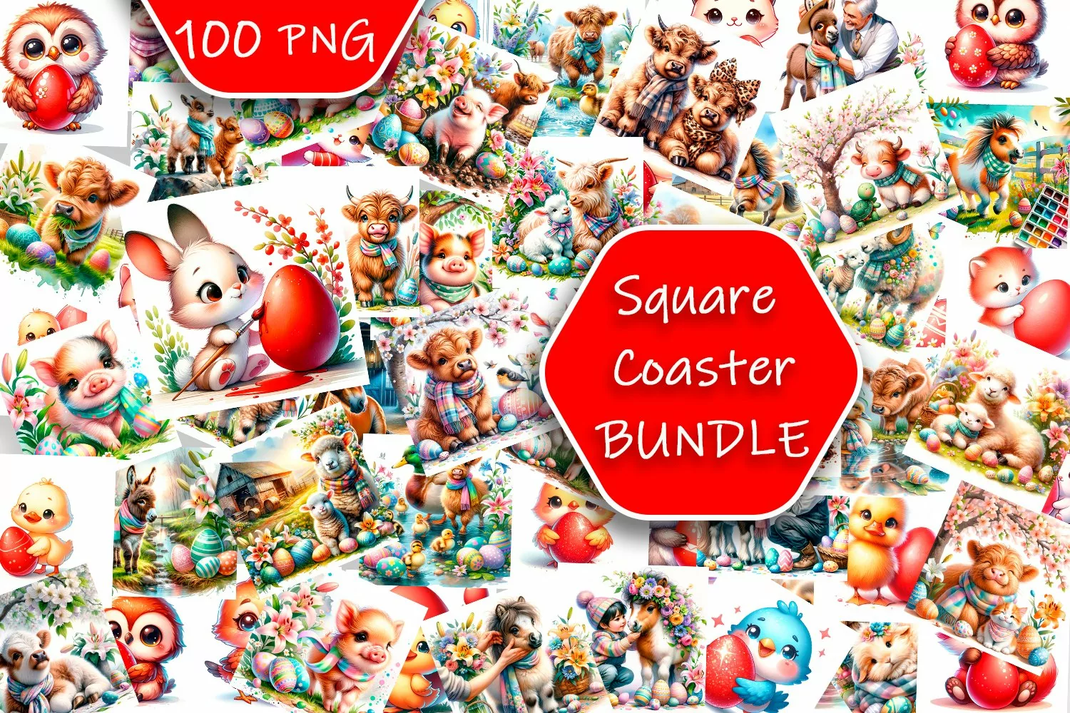 Animal easter square coaster sublimation bundle