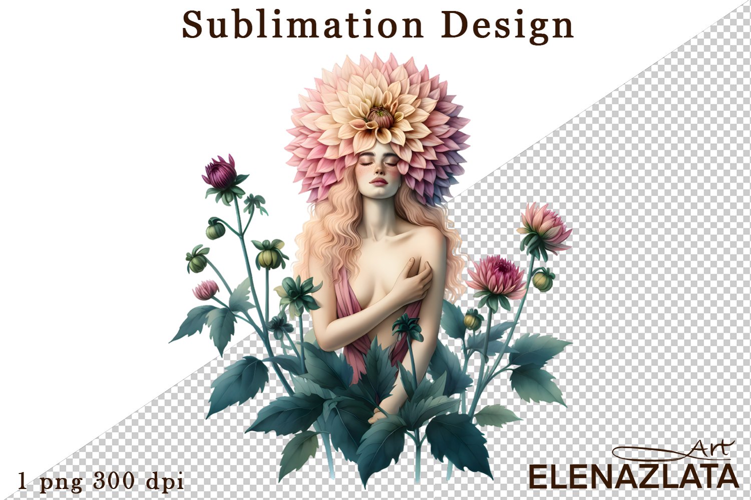 Watercolor dahlia girl flowers clipart, flowers Sublimation