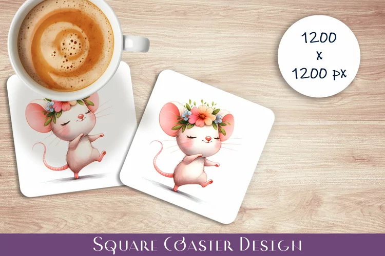 Cute Animals Cute Mouse Coaster Sublimation Coasters Square Square Coaster Sublimation Square Coaster Sublimation Designs Tea Cup Square Coaster Design Tea Cup Square Coaster Dancing Baby Mouse Mouse Coasters