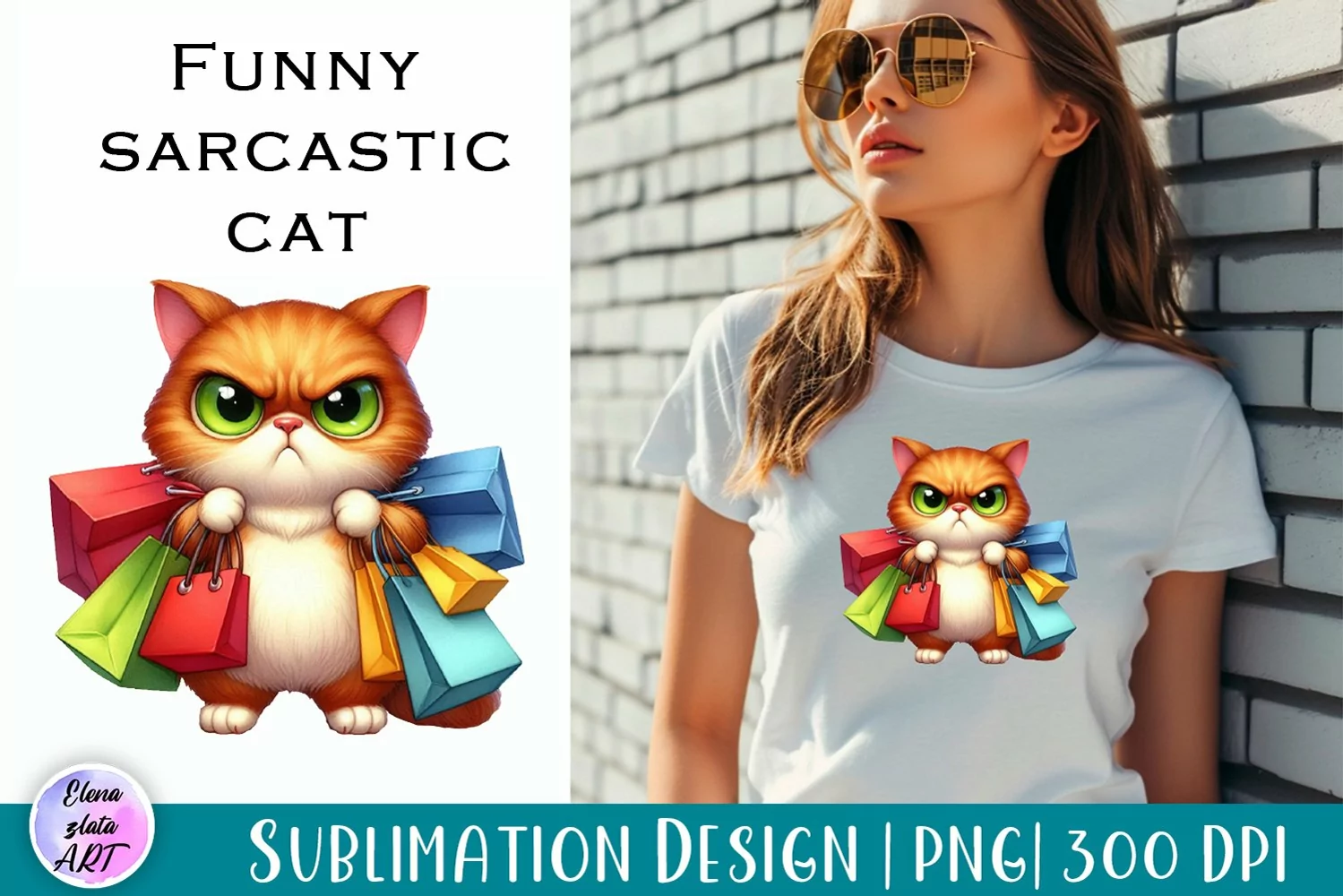 Funny sarcastic cat, watercolor clipart, cat Print example image 1
