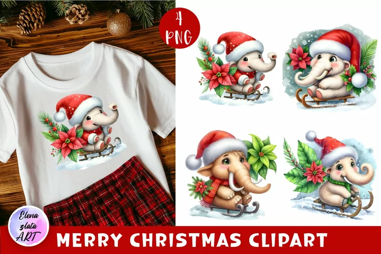 Christmas Clipart Watercolor Christmas Animal Clipart Cute Animals Clipart Christmas Sublimation Winter Animal Funny Christmas Animal Cute Mammoth Christmas Animal Pillow Retro Christmas Animal