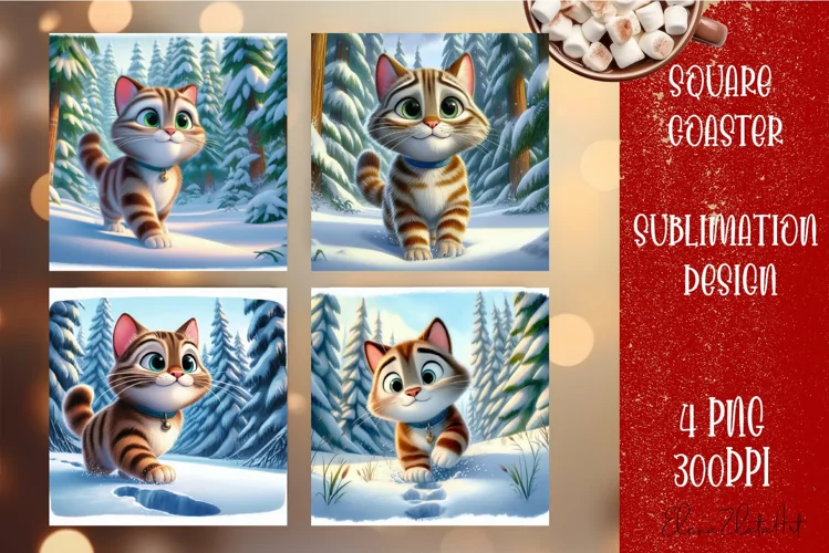 Coaster Funny Cat Christmas Animals Funny Christmas Art Decor Coaster Sublimation Coasters Square Square Coaster Sublimation Christmas Square Coaster Tea Cup Square Coaster