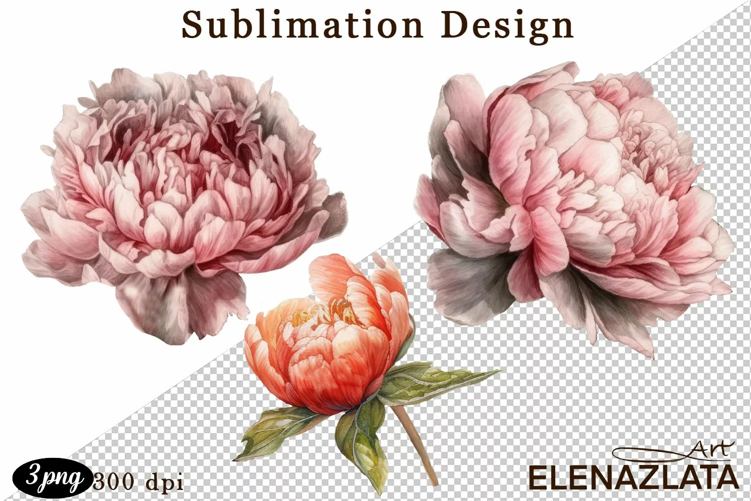 This collection includes lush flowers, buds, peony leaves. High resolution png files (300 dpi) with transparent background.