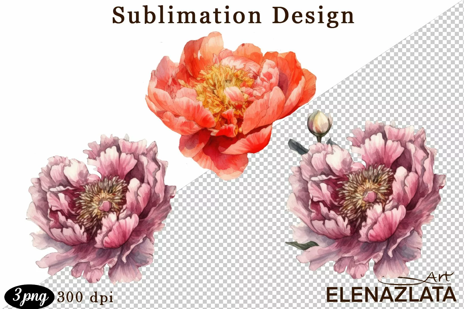 Similar Design Products to Watercolor Pink Peonies Flowers Clipart