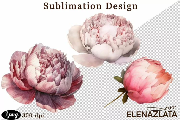 Similar Design Products to Watercolor Pink Peonies Flowers Clipart