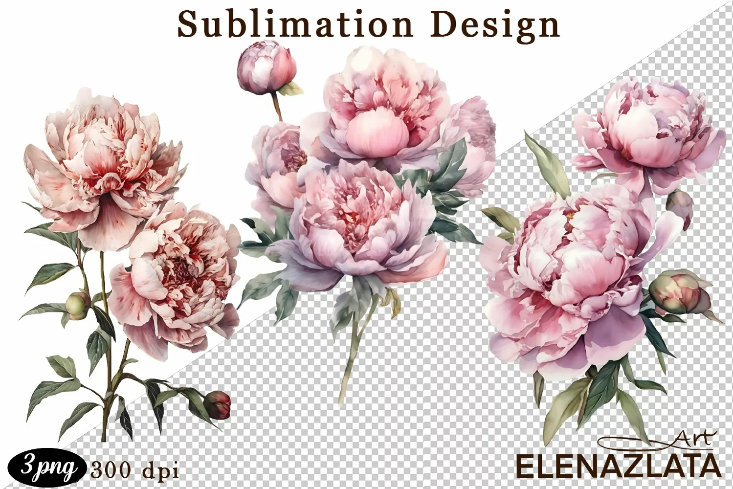This collection includes lush flowers, buds, peony leaves. High resolution png files (300 dpi) with transparent background.