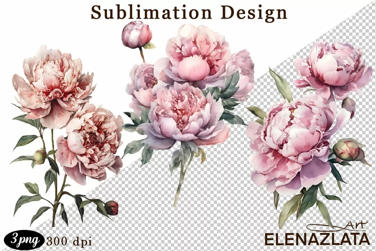 Similar Design Products to Watercolor Pink Peonies Flowers Clipart
