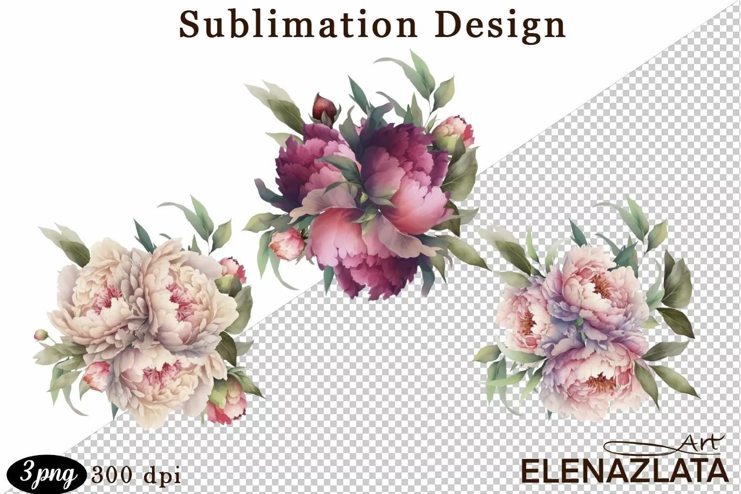 Similar Design Products to Watercolor Pink Peonies Flowers Clipart