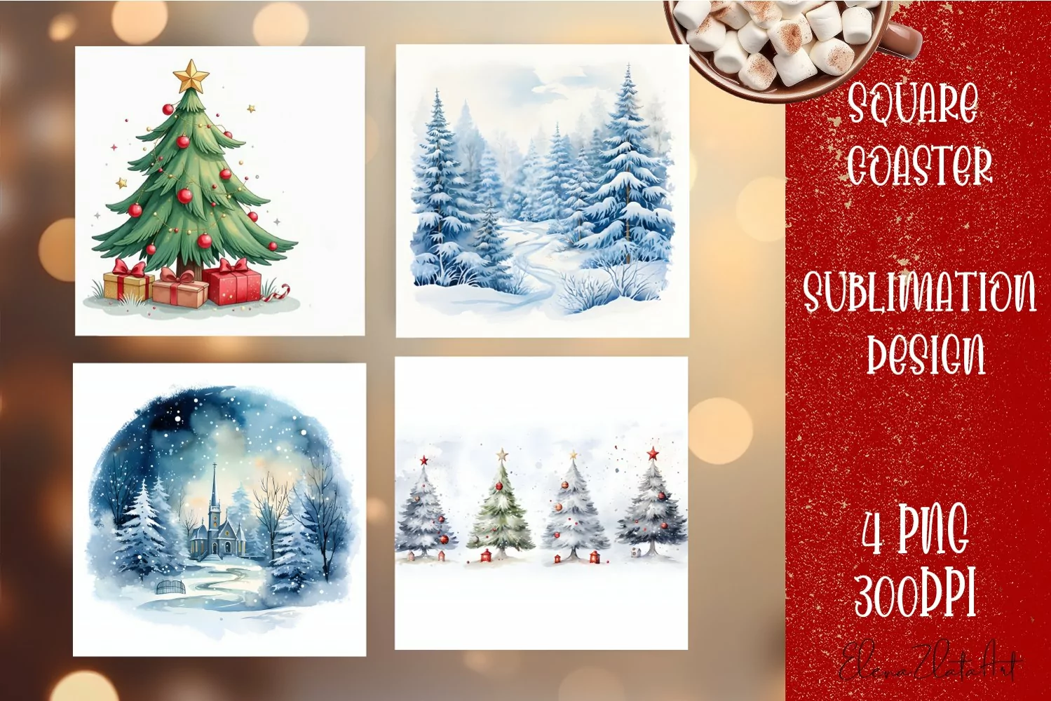 Winter Christmas Tree Happy Christmas Christmas Decor Christmas Coaster Coaster Designs Coaster Sublimation Christmas Coaster Sublimation Square Coaster Sublimation Boho Square Coaster Design