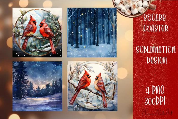 Winter Happy Christmas Christmas Decor Birds Sublimation Christmas Coaster Coaster Designs Coaster Sublimation Christmas Coaster Sublimation Square Coaster Sublimation Boho Square Coaster Design