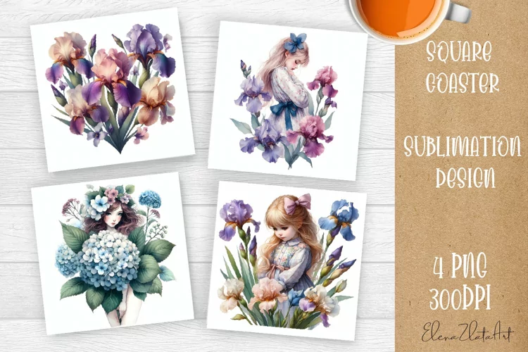 Flowers Square Coasters, valentines day Sublimation Design example image 1