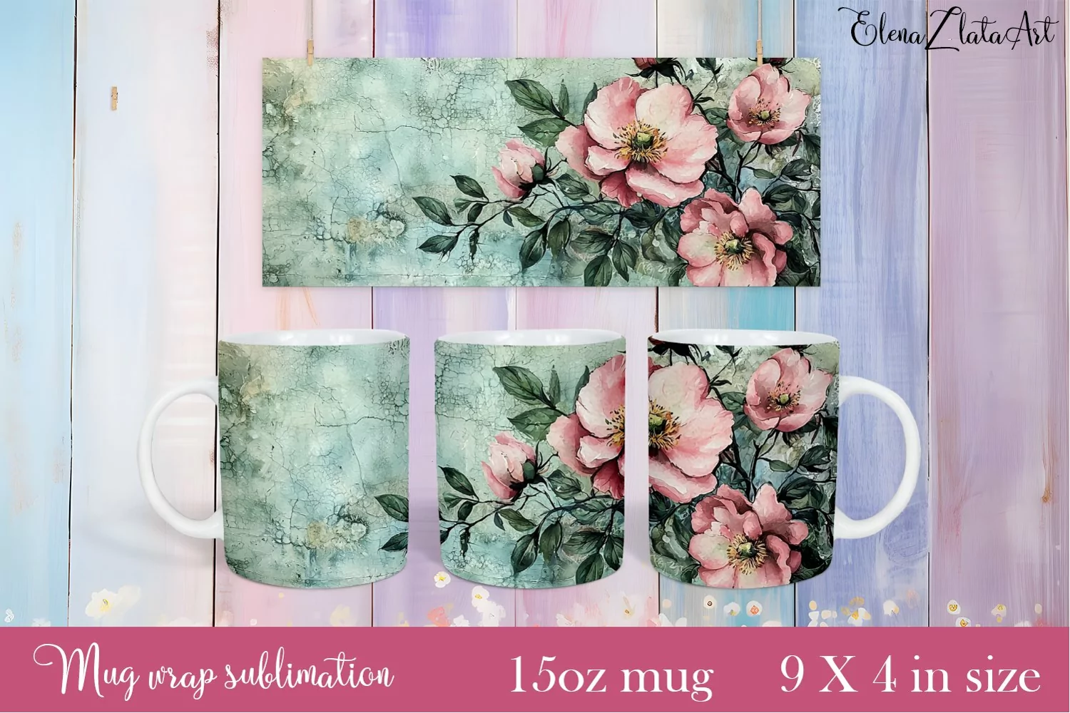 Flowers Mug Sublimation, Floral Design Mug example image 1