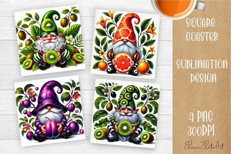 Gnome Sublimation Coaster Sublimation Berry Gnome Coasters Square Square Coaster Sublimation Square Coaster Sublimation Designs Gnome Square Coaster Tea Cup Square Coaster Design Berry Square Coaster Cute Berry Gnome