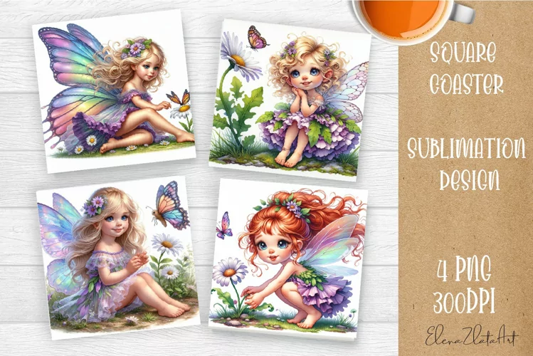 Square Coaster Fairy Sublimation Design Png | Summer Png