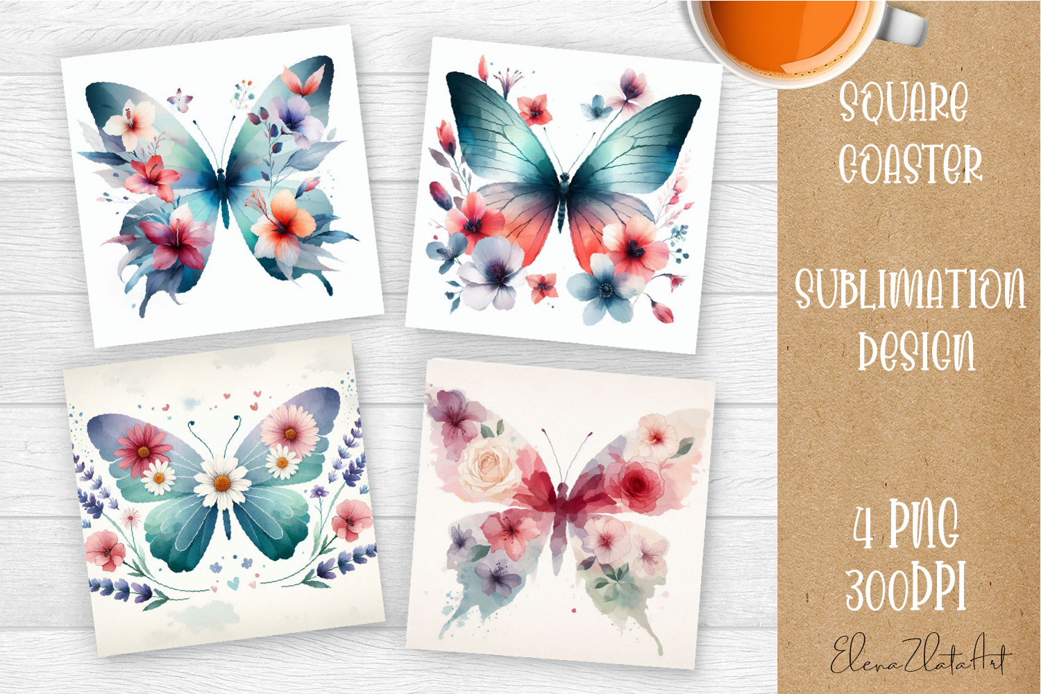 Butterfly square coaster sublimation | Butterfly coaster PNG example image 1