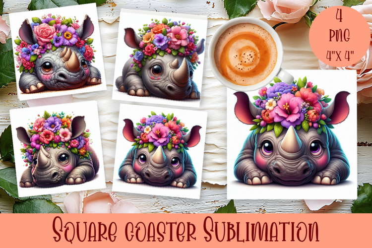Cute Animals Funny Animal Flower Animal Coaster Sublimation Coasters Square Square Coaster Sublimation Square Coaster Sublimation Designs Animal Square Coaster Animal Summer Tea Cup Square Coaster Design