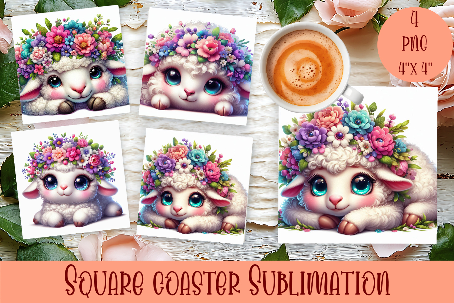 Cute Animals Funny Animal Flower Animal Coaster Sublimation Coasters Square Square Coaster Sublimation Square Coaster Sublimation Designs Animal Square Coaster Animal Summer Tea Cup Square Coaster Design