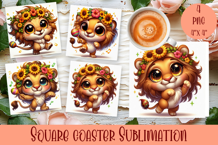 Cute Animals Funny Animal Flower Animal Coaster Sublimation Coasters Square Square Coaster Sublimation Square Coaster Sublimation Designs Animal Square Coaster Animal Summer Tea Cup Square Coaster Design