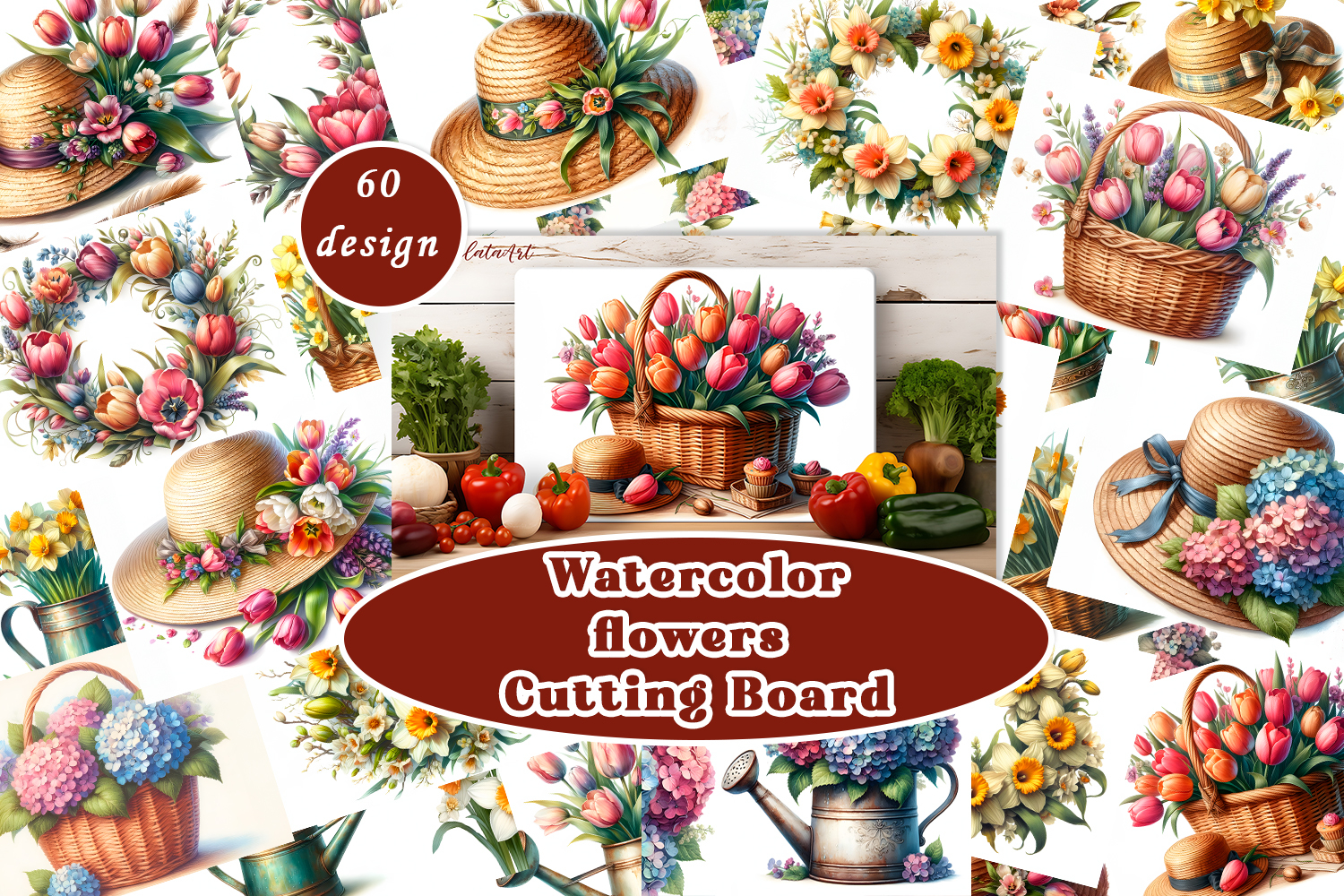 Similar Design Products to Watercolor flowers Cutting Board, Easter design