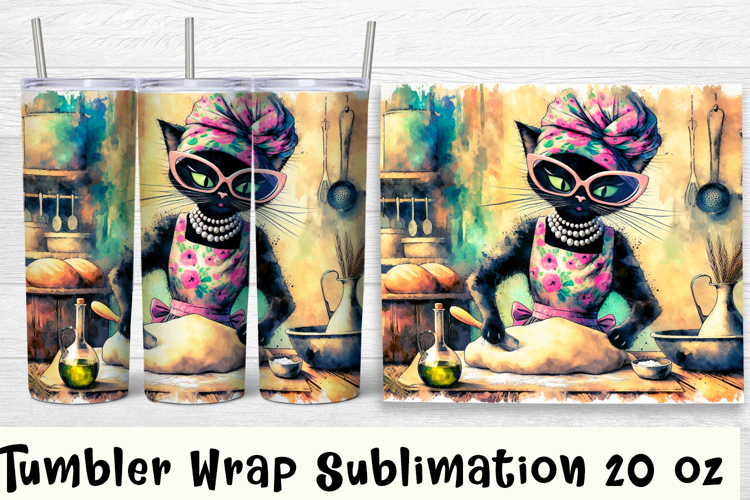 Funny Housewife cat Watercolor Sublimation Tumbler Wrap