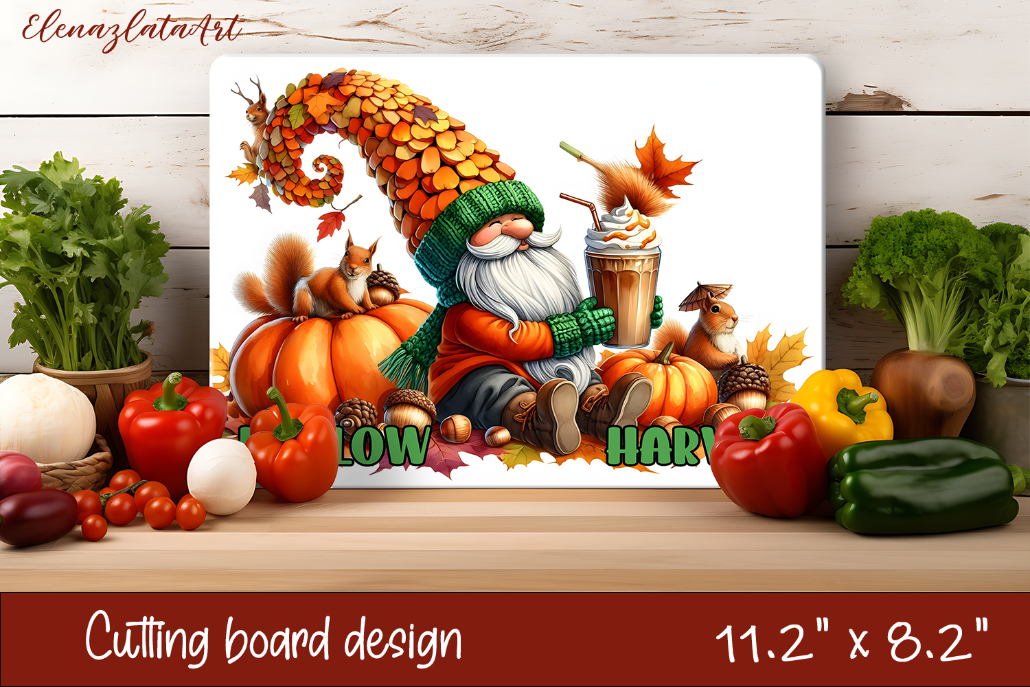 Gnome cutting board for Autumn with coffee, pumpkins, leaves example image 1