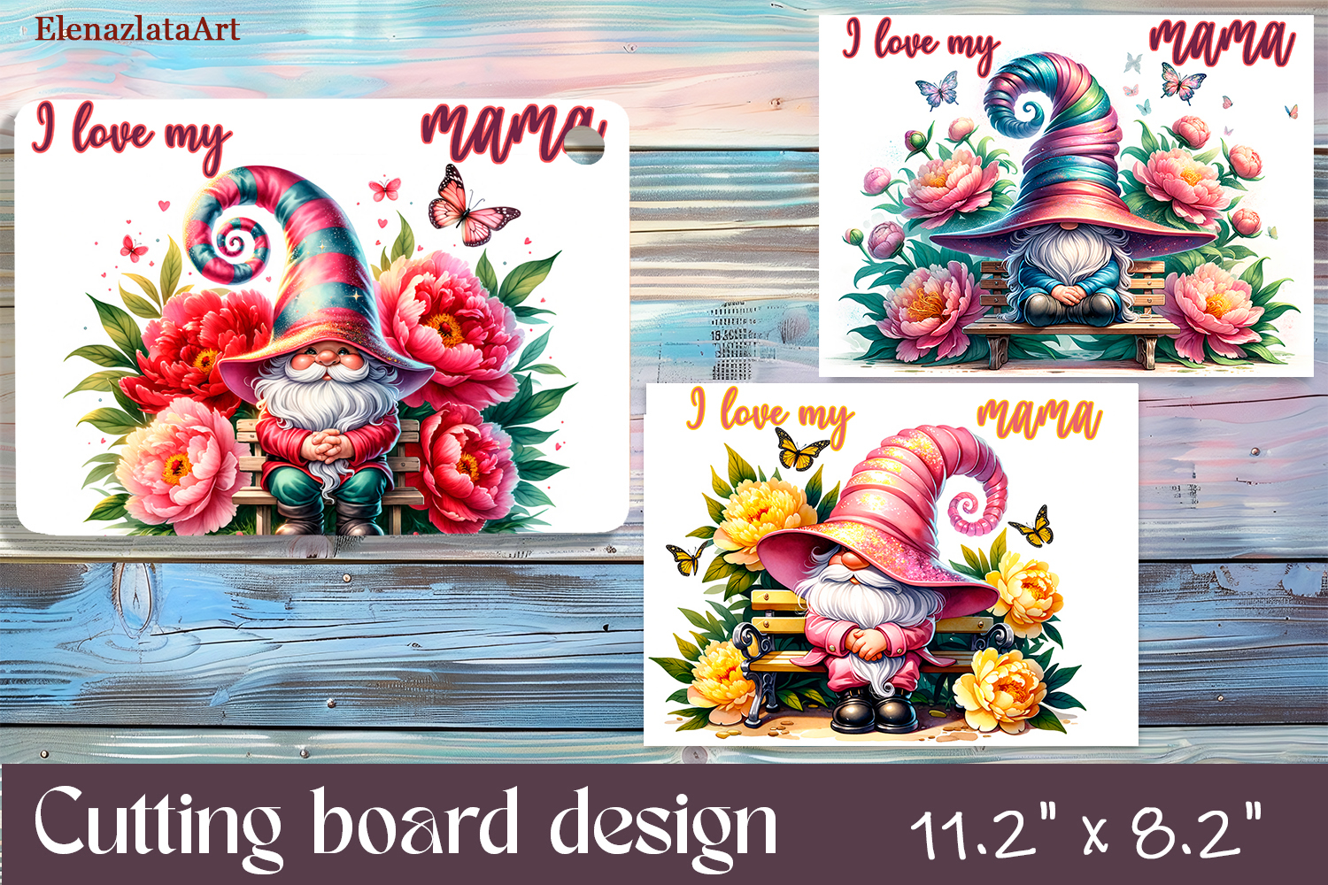Flowers Gnomes Cutting Board Sublimation, Mom Kitchen