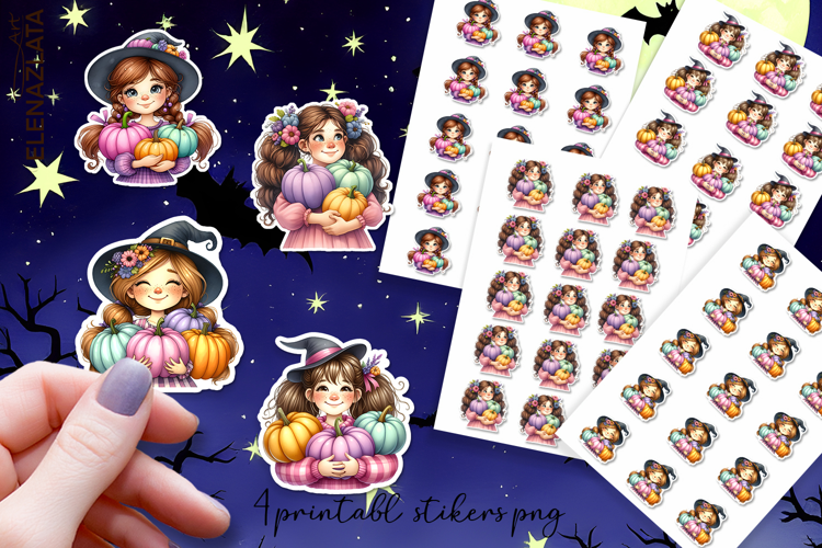4 sticker sheets in PNG format, 8.5' x 11' letter size ( transparent background, 300 dpi);