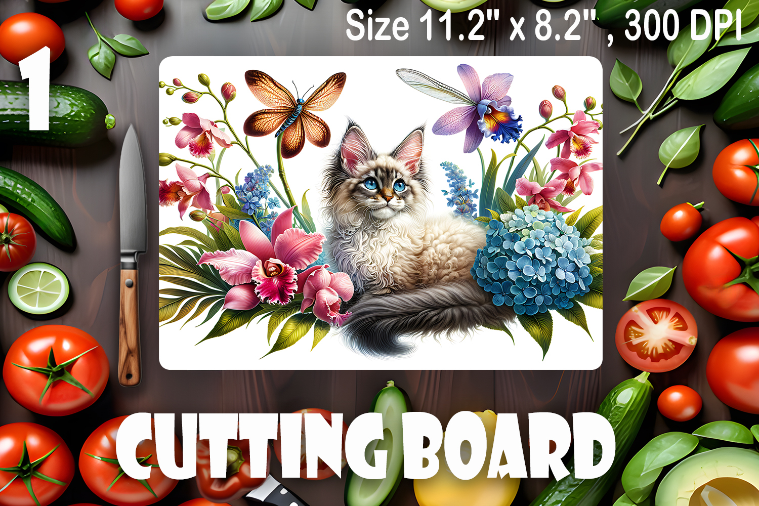 Funny Cats cutting board sublimation, Flowers sublimation